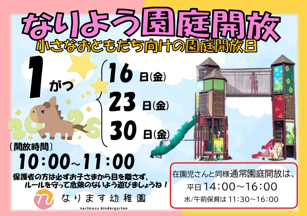 冬休み期間〔12/22(月)~1/8(木)〕の園庭開放