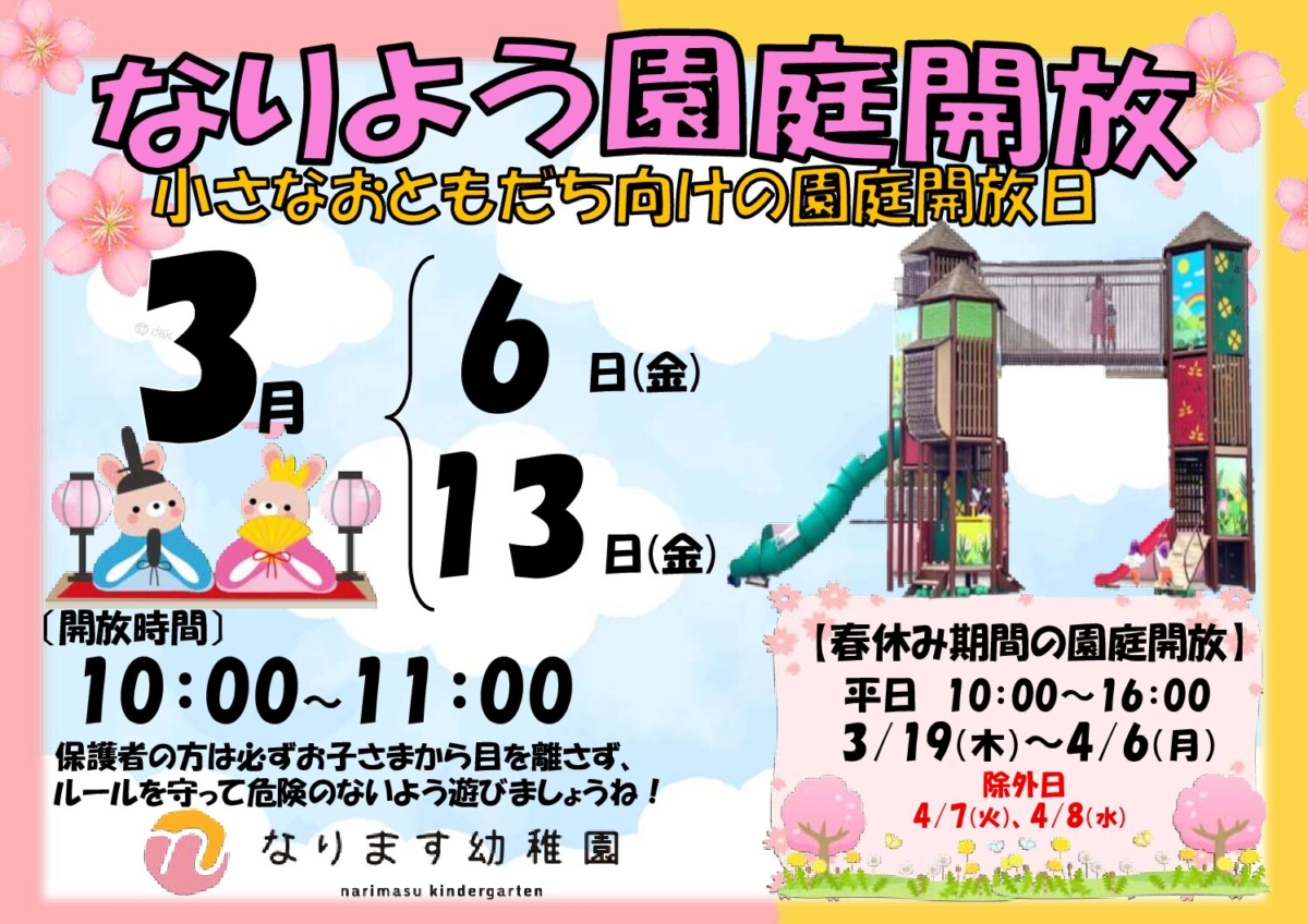 【今月の開放日】2026年 3/6(金)、3/13(金)※雨天中止