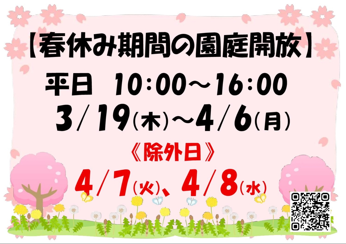春休み期間〔3/19(木)~4/6(月)〕の園庭開放